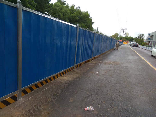 南京道路施工用的彩鋼瓦圍擋價格安裝完成